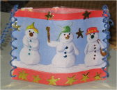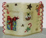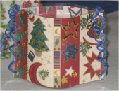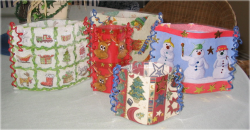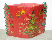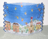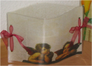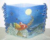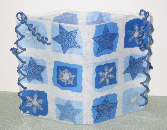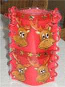 Alle Windlichter sind mit Laminierfolien, in die eine Serviette eingelegt wurde, gearbeitet; sie gibt es in verschiedenen Größen. Nach dem Laminieren wurden sie beglitzert, mit Folie oder mit Stickern verziert.